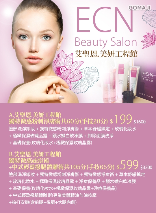 只要199元起,即可享有【艾聖恩.美妍工程館】A.艾聖恩.美妍工程館獨特微感粉刺淨膚術共60分(手技20分) / B.艾聖恩.美妍工程館獨特微感祛痘術+中式輕盈撥腿體雕術共105分(手技65分)